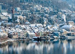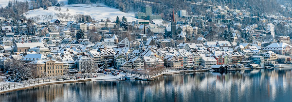 Nr 034 Zuger Altstadt, Winter, LuftaufnahmeA5 quer Bild aufgeklappte Karte