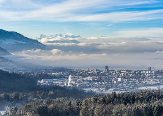Nr 024 Baar mit Stadt Zug mit Alpen, WinterA5 quer 5 CHF x Anzahl: |
