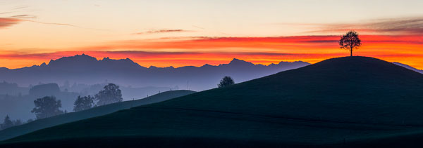 Nr 026 Sonnenaufgang ueber Moraenenlandschaft, NeuheimA5 quer Bild aufgeklappte Karte